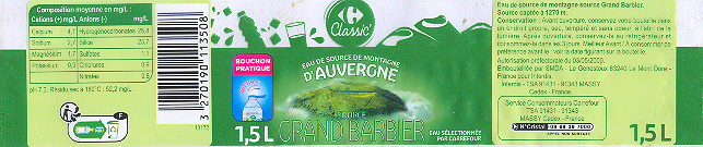 " Grand Barbier " ( Eau de Source de Montagne d'Auvergne )