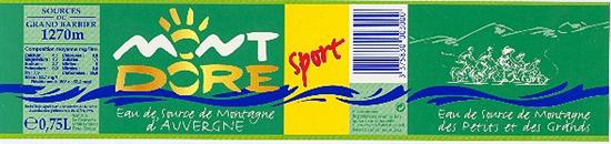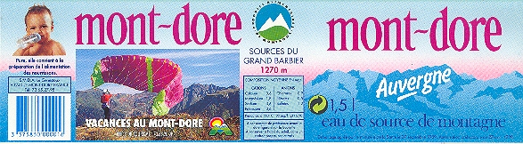 C'est au coeur du Massif du Sancy , situées à une altitude de 1270 mètres sur le versant nord du Mont Grand Barbier , que les Eaux du Mont Dore , appelées " Eaux de Source de Montagne " , prennent naissance . Cette Eau de Source est embouteillée par la Société S.M.D.A du Genestoux , au Mont Dore dans le Département du Puy de Dome ( 63 ) .