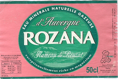 La Source Rozana , connue depuis l'Antiquité sous le nom de " Source des Romains " , émerge au hameau de Rouzat . Elle est deferrisée et regazéifiée avec son propre gaz . C'est au au cours d'un lent cheminement à travers les Terres d'Auvergne que l'Eau Minérale Rozana se charge naturellement en minéraux essentiels pour votre bien etre . Son origine lui procure une exceptionnelle richesse en magnésium .
