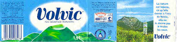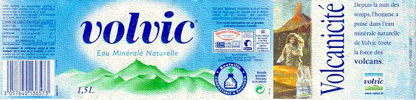 Volvic à crée une série de 4 étiquettes , mème image représentée sur chaque étiquette , mais avec une désignation différente : Volcanicité , Activité , Force et Ancestral