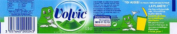 Trés pure , faiblement minéralisée et de Ph neutre , l'Eau de Volvic peut être bue par tous à chaque instant de la journée . Elle convient particulièrement à l'alimentation du nourrisson . Eau provenant de la Source " Clairvic "