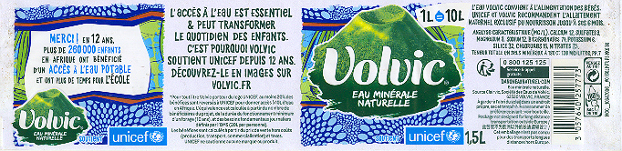 VOLVIC avec l'UNICEF pour la 8ème Année : ( 1L acheté ici = 10 L puisés au Sahel )